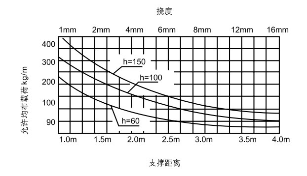梯級(jí)式電纜橋架在不同跨距下*大在允許均布載荷及變形量(見(jiàn)左圖)