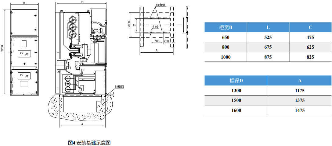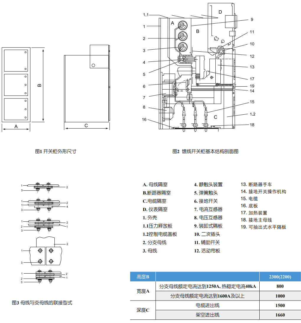 在電纜室內(nèi)單獨(dú)設(shè)立有5X40mm2的接地銅排能貫鄰相鄰的開(kāi)關(guān)柜,并與柜體良好接觸。此接地排供直接接地之元器件使用。同時(shí)由于整個(gè)柜體用覆鋁鋅板相拼聯(lián),這樣使整個(gè)柜體都處在良好接地狀態(tài)之中,確保運(yùn)行操作人員觸及柜體**。開(kāi)關(guān)設(shè)備外形尺寸(見(jiàn)圖1)